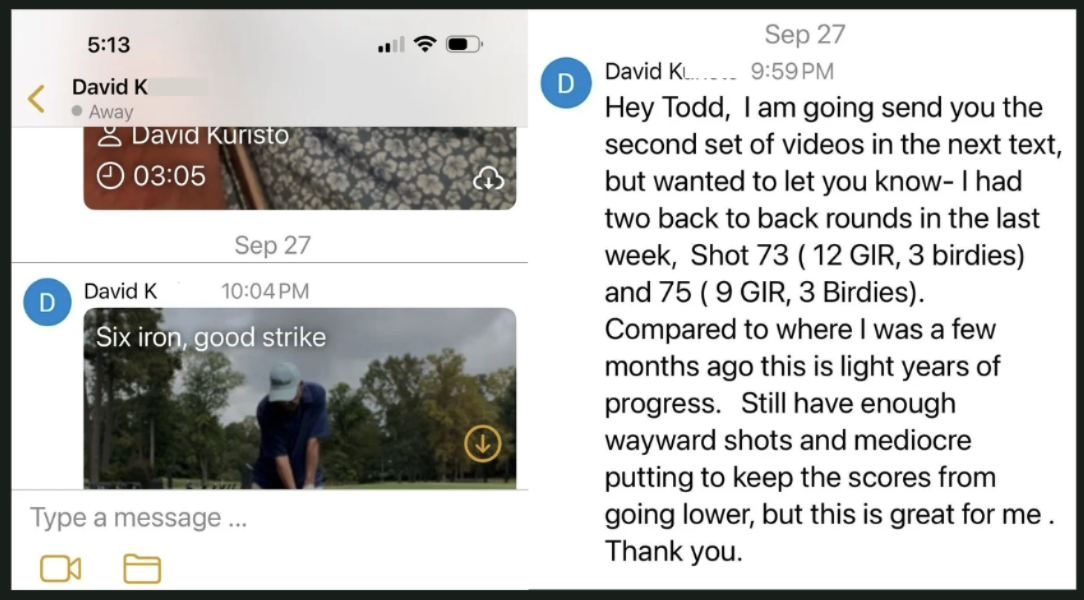 When you submit a swing, Todd personally reviews it and shows you: